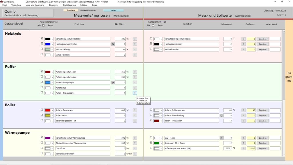 Software zur Steuerung und Überwachung von Wärmepumpen und anderen Geräten via Modbus TCP/IP