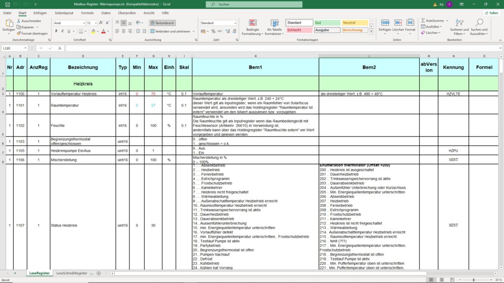 Die meisten Hersteller von Geräten, die über einen Modbus-Zugang verfügen, stellen die ausführlichen Register-Tabellen zur Verfügung, teilweise sogar schon als Excel®-Datei (.xls oder .xlsx).